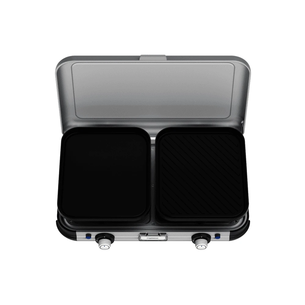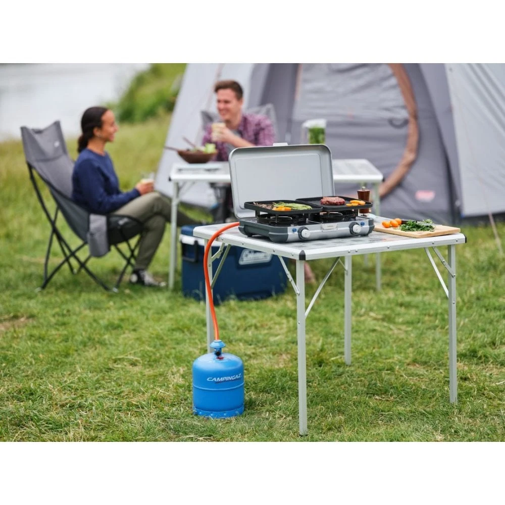This innovative and versatile 2,000 Watt double burner stove from Campingaz features multiple cooking options, allowing preparation of a wide variety of meals.