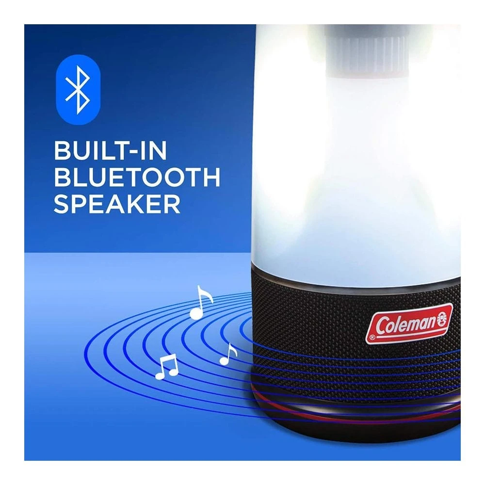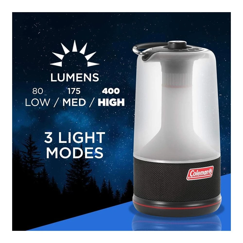 The Coleman® 360° Sound and Light Lantern is perfect for entertaining family and friends during outdoor gatherings. The 2-in-1 device offers a full 360° of light and the wireless capability of a Bluetooth speaker, so you can enjoy your favorite playlists long after the sun has set. With up to 400 lumens of hands-free light, weather-resistant materials, and IPX4 water resistance, the lantern serves as a crucial component of camping gear, and a great piece for backyard entertaining.Â