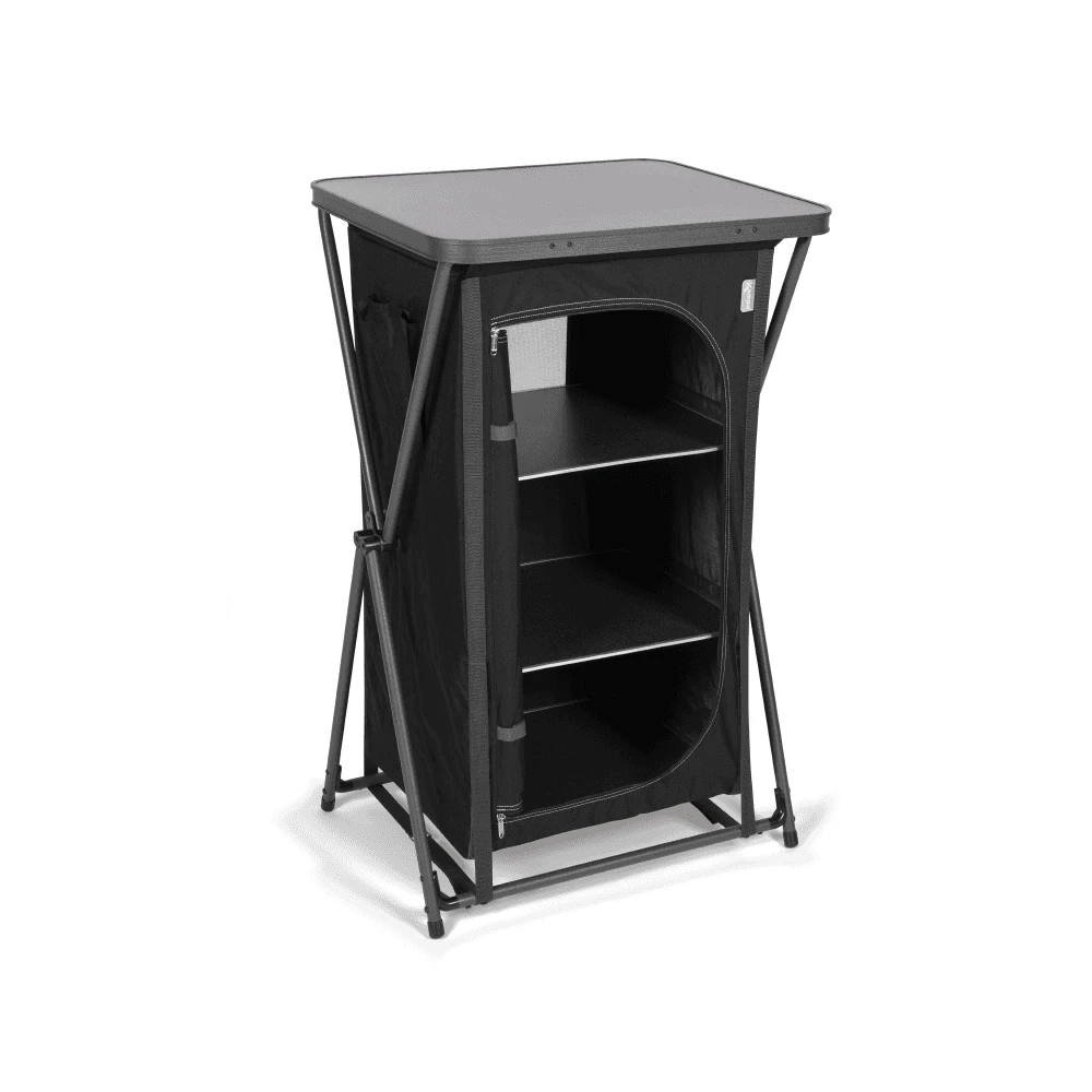 Featuring three internal shelves, a strong aluminium frame and durable laminated table top. The ideal accessory for any camping trip.