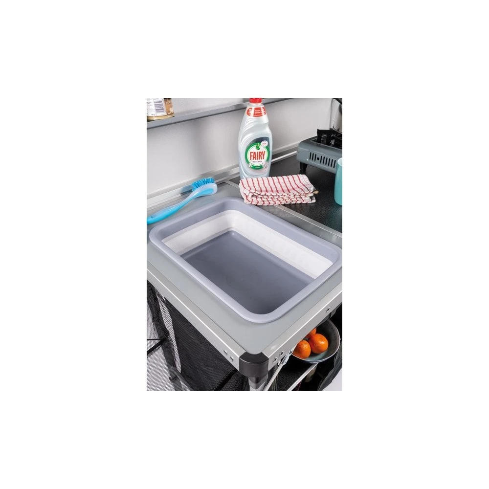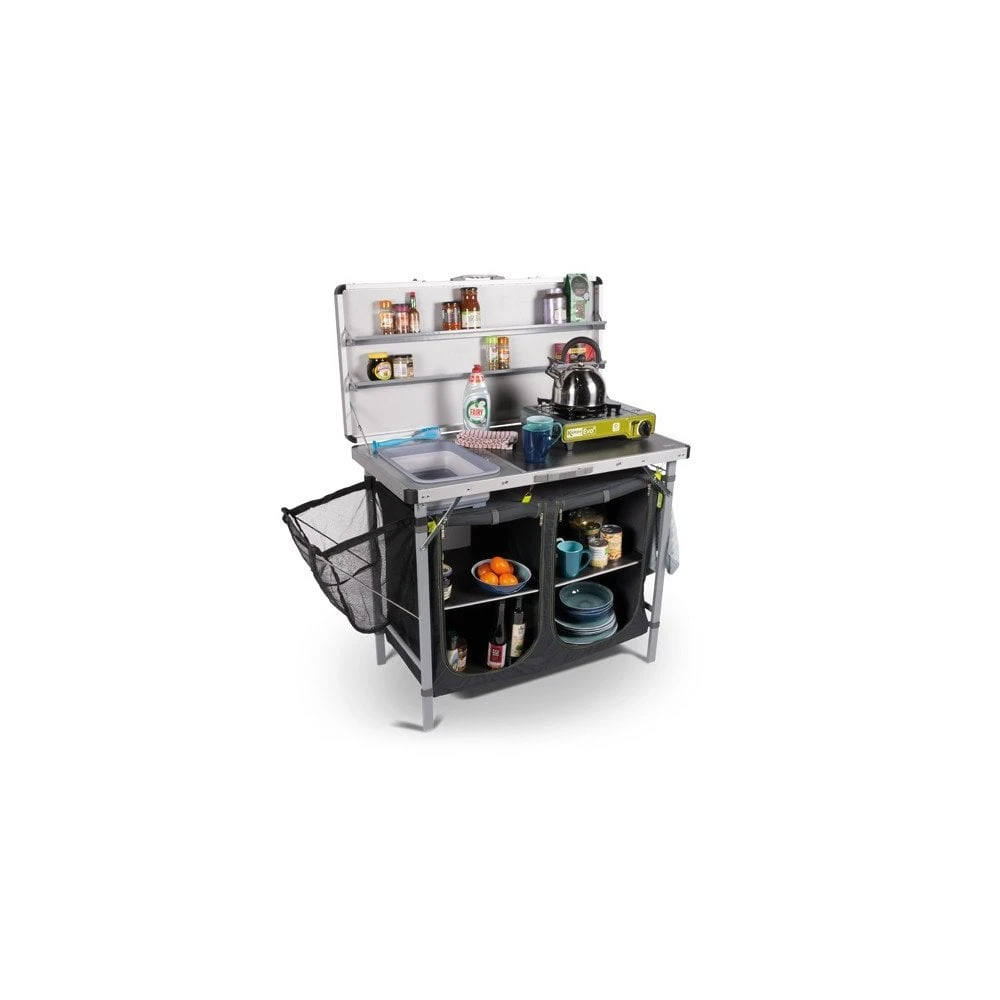 Enjoy tasty and convenient food on your camping trip with the Kampa Chieftain Field Kitchen. Featuring a collapsible built-in sink, shelves and a hanging rail to keep your kitchen necessities organized and tidy. This extra-large kitchen unit provides everything you need to cook in the outdoors.