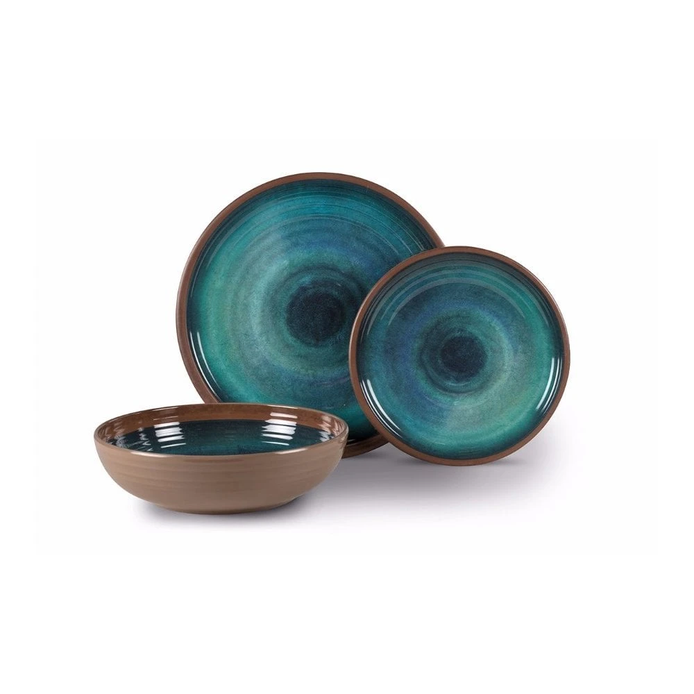 Add some home comforts to al fresco mealtimes with the Java 12-piece set. From our Artisan collection of melamine tableware, the set combines attractive colors and an eye-catching design with irregular contours to create a rustic aesthetic. E