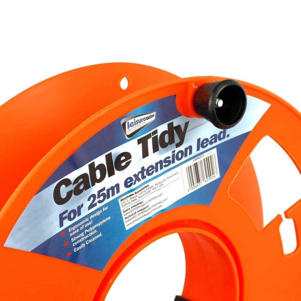 This highly visible cable tidy is robust in design and can hold anything from a rope to a caravan extension cable up to a maximum length of 25m.