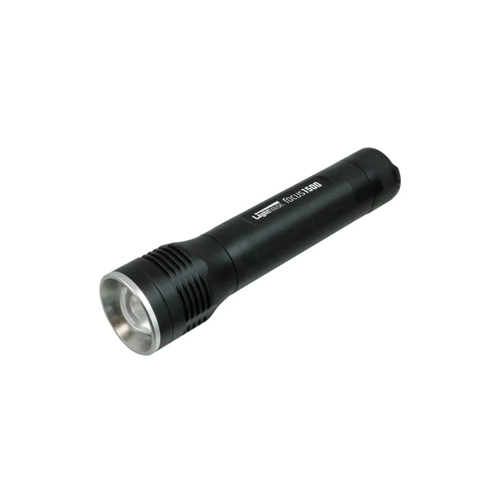 The Lighthouse Elite Focus1500 LED Torch will run on rows of either 9, 6 or 3 AA batteries*. Supplied with 9 x AA alkaline batteries and a wrist strap.