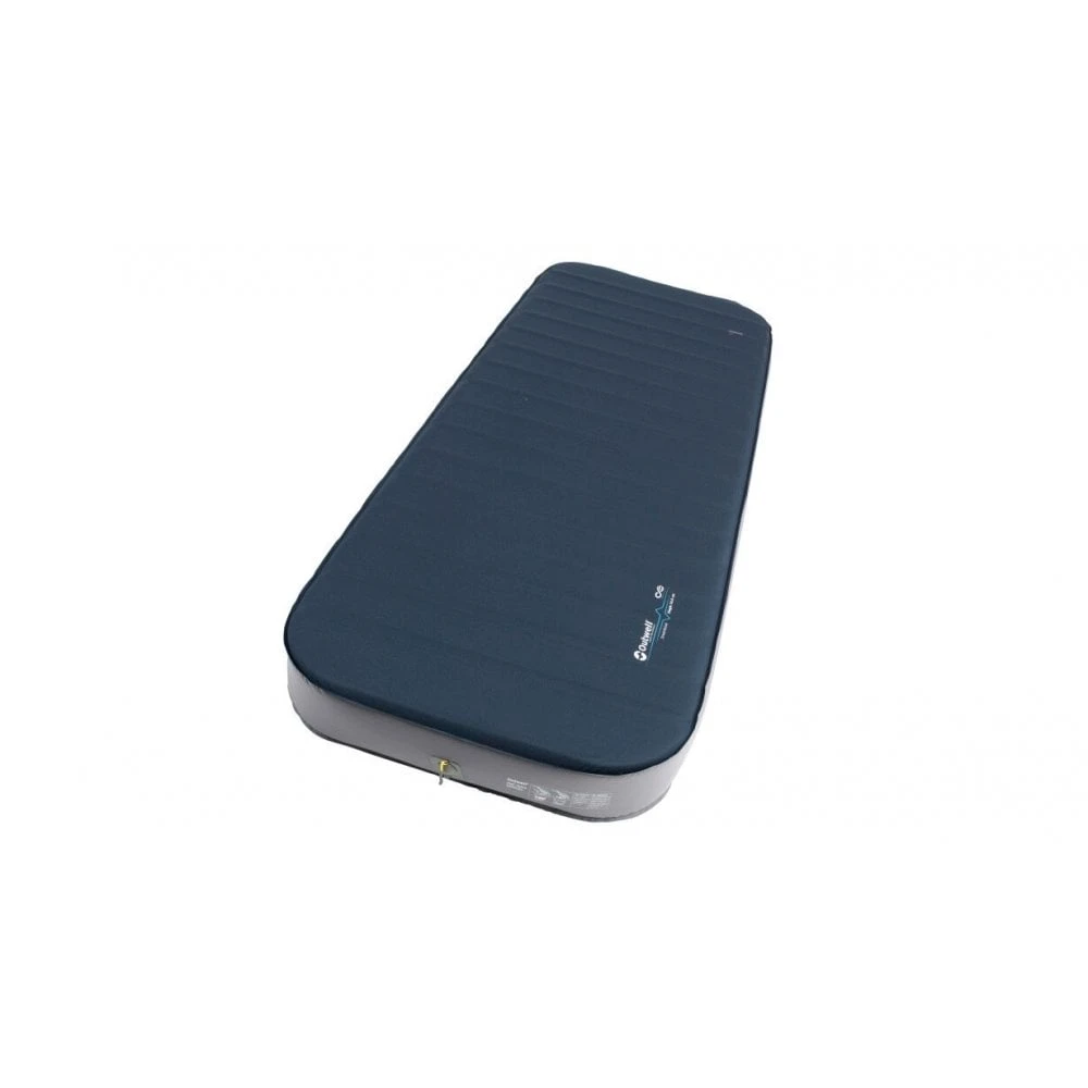 The Dreamboat range of single and double designs in various thicknesses features the Outwell® FHF (Flat High-Flow) valve with an enhanced air flow for both inflation and deflation. Its vertical side static fabric panels do not bend under pressure, thus aiding easy inflation as less air needs to be pumped.