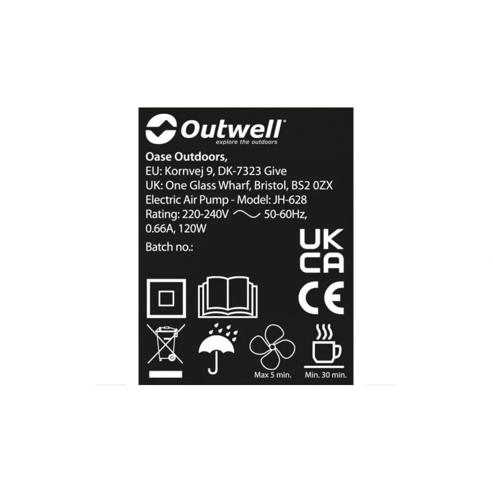 The 3-layer Flock Superior airbed from Outwell features a built-in pump for convenience; the pump comes with a UK plug for power.