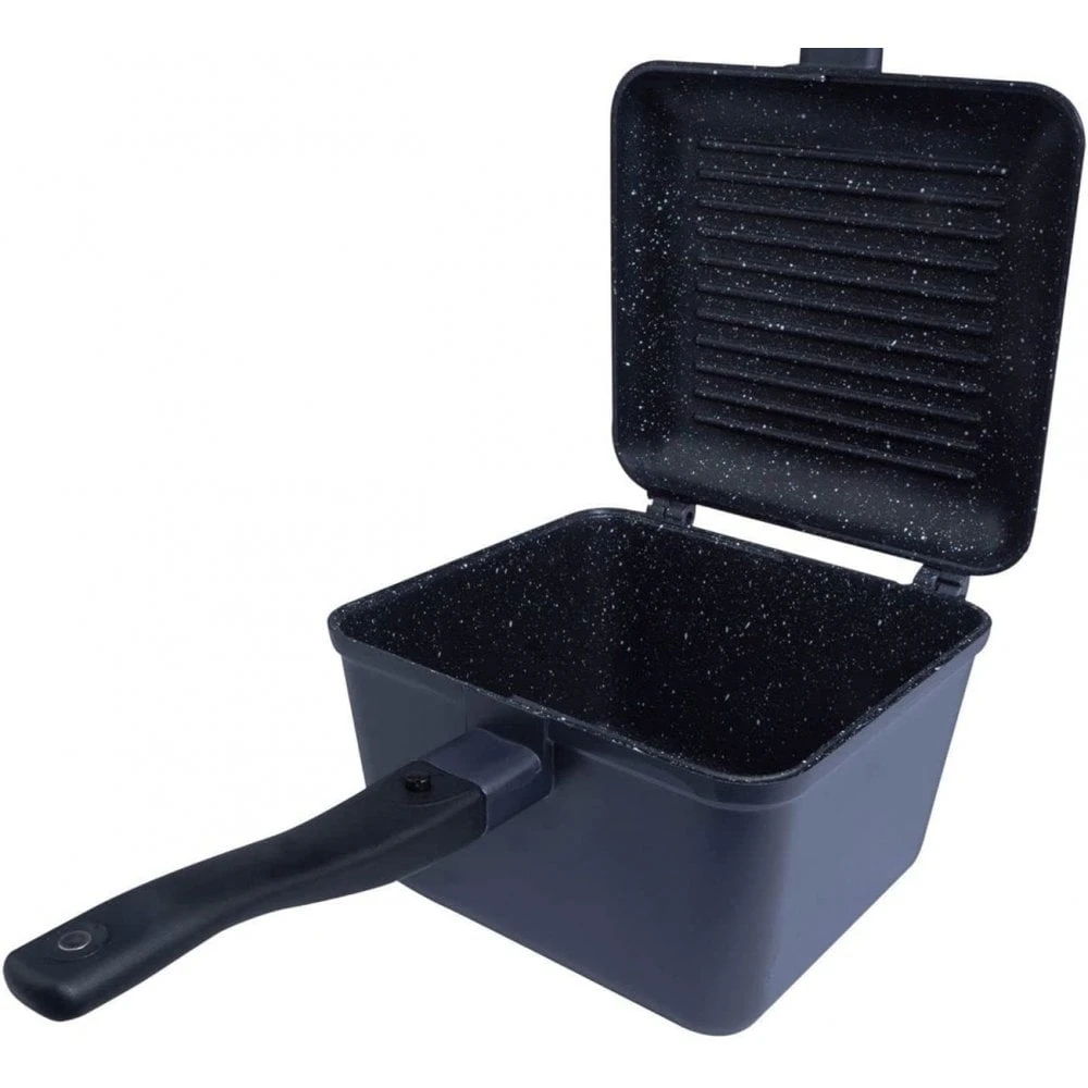 The Connect Deep Pan & Griddle XL Granite Edition features detachable cool-touch handles and a detachable hinge system that transforms one pan into two – a deep sided saucepan and a separate griddle pan.