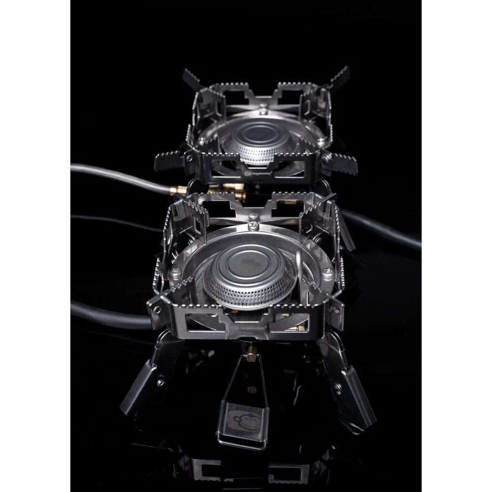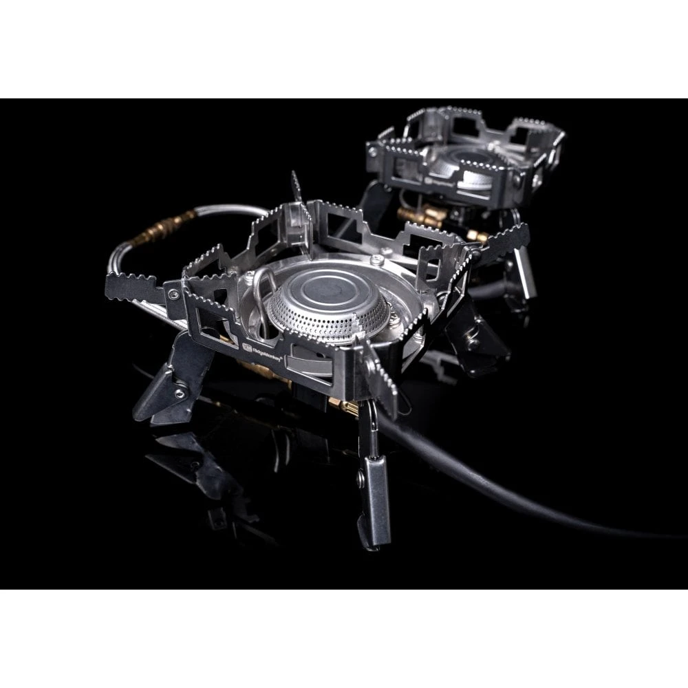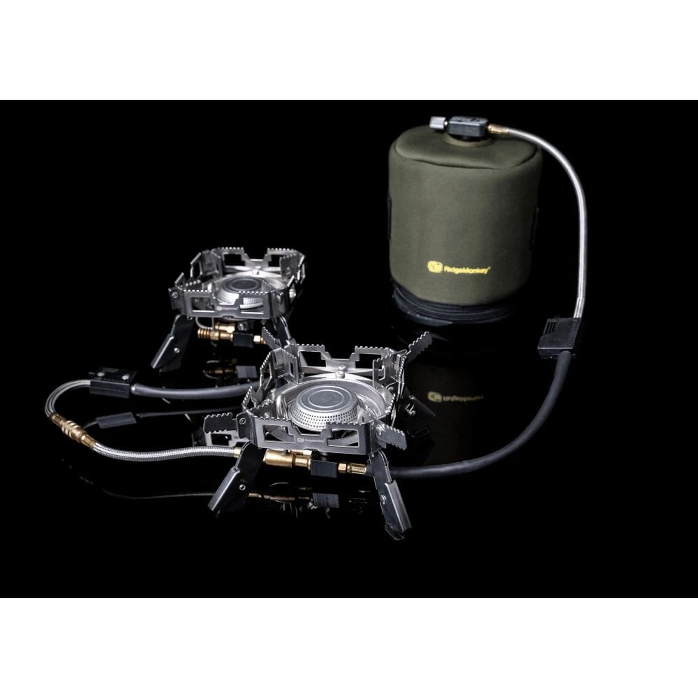 The RidgeMonkey Quad Connect: the only stove system on the market to feature an independently controllable, completely removable second stove head using a quick release connector built into the primary stove and now available in an all-new super-compact mini design!