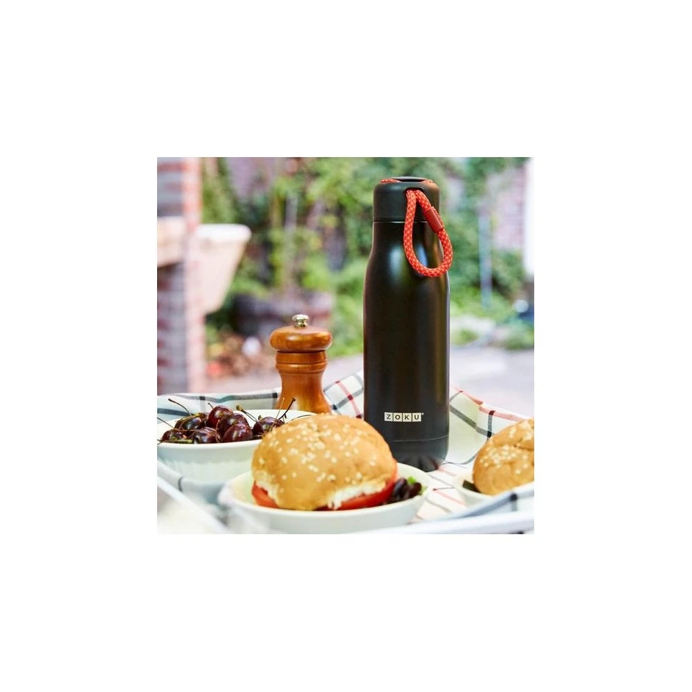 Thsi Vacuum Insulated Stainless Steel Flask/Bottle makes sure cold beverages stay that way for up to 40 hours. And hot beverages do not lose steam, maintaining heat for up to 12 hours. Designed to take a hit, this double-walled bottle/flask is made of heavy gauge 18/8 stainless steel, yet remains easy to carry with removable paracord lanyard.